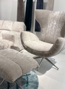 Loungiger Cassia Dreh-/Wippsessel mit Hocker im dichten Hochfloor Velour moondust